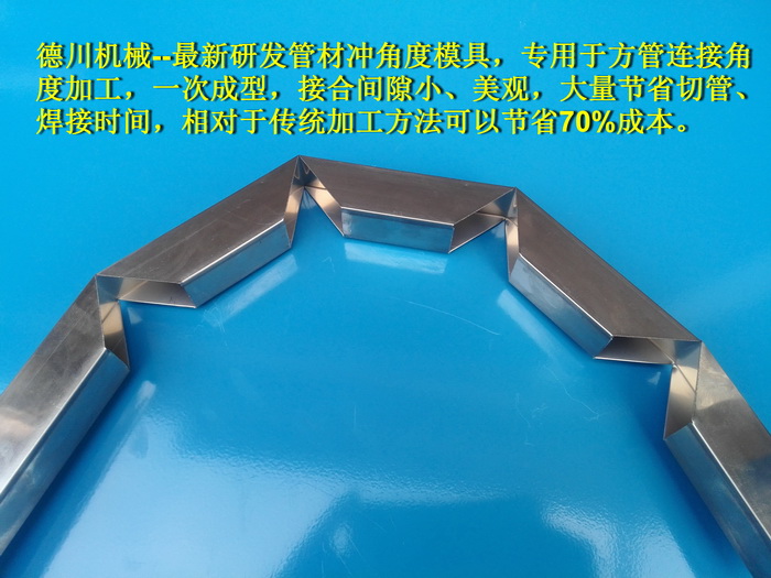 德川機(jī)械--最新研發(fā)管材沖角度模具,專(zhuān)用于方管連接角度加工,一次成型,接合間隙小、美觀,大量節(jié)省切管、焊接時(shí)間,相對(duì)于傳統(tǒng)加工方法可以節(jié)省70%成本。...