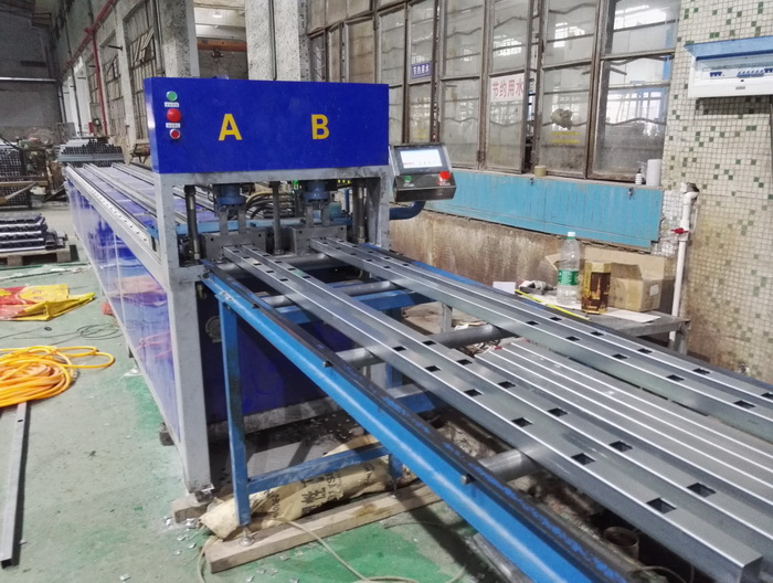 數(shù)控護(hù)欄沖孔機(jī),兩工位同時(shí)工作,一次沖四支管,每個(gè)油缸可單獨(dú)控制沖全孔、半孔,大大提高護(hù)欄沖孔效率...