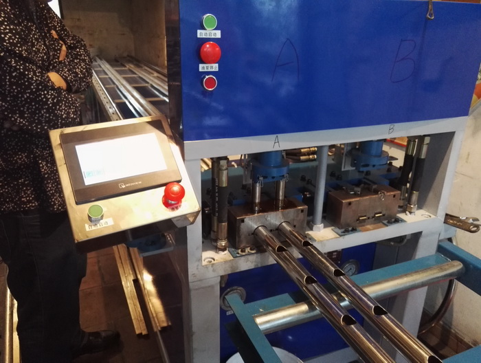 數(shù)控全自動(dòng)樓梯沖孔機(jī),兩工位同時(shí)工作,一次沖四支管,每個(gè)油缸可單獨(dú)控制沖全孔、半孔,大大提高樓梯圓管沖孔效率。...
